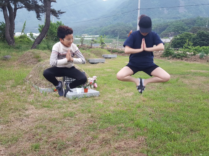 생일날 아이들 데리고 아버지 산소에 왔습니다.