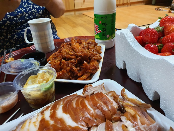 엄마가 좋아하시는 족발에 막걸리 한사발.