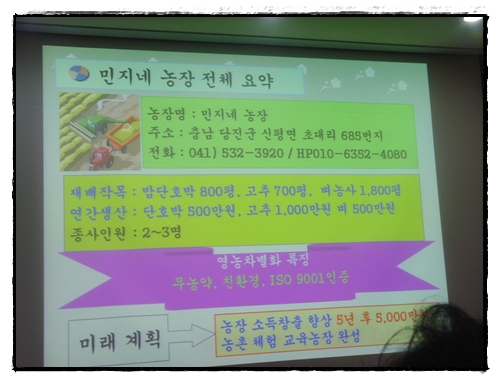 민지네농원 박민자님께서 처음으로 발표를 하셨다.