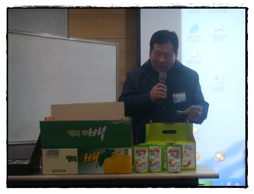 김광익 사장님의 배와 함께 배즙을 소개하여주시고...