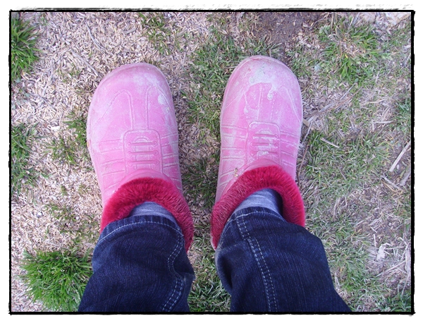 신고있는 나의 흙묻은 신상고무신이 나를 보고 웃고있다.