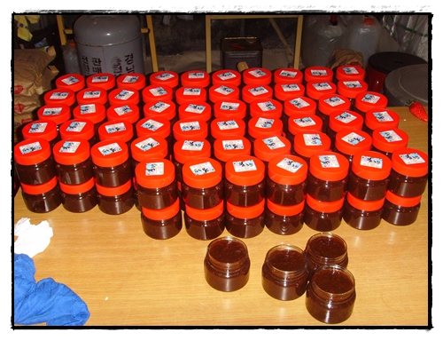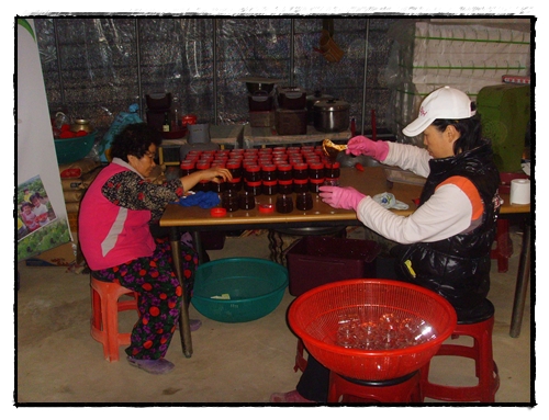 농장일을 마치고 밤에 담는 작업을 하였다.