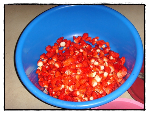 깨끗이 손질한 딸기로 4~5시간을 끓이면서 저어야만 되는 딸기쨈...
