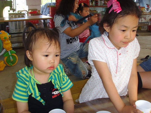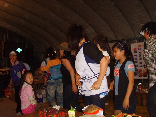 \저녁이 되니 아이들이 졸려서 일찍 자리에서 일어납니다.