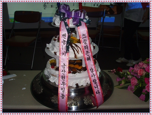 금산학우들이 인삼으로 표현해서 정성스럽게 만든 케이크....