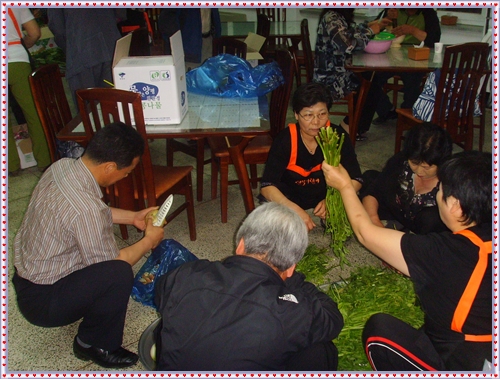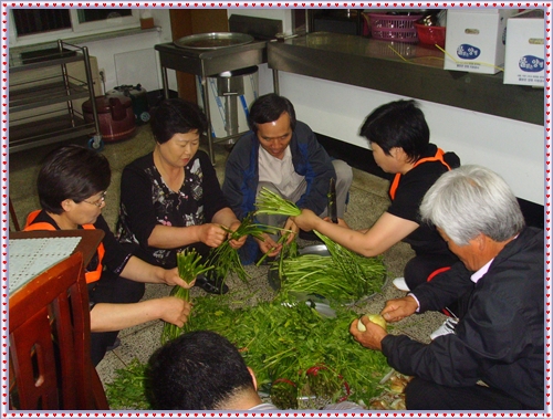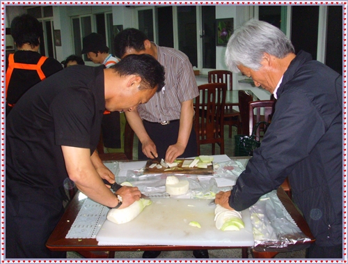 모두들 아침일찍 일어나 어제 준비한 야채들과 재료들을 가지고