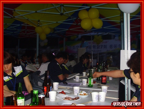 저녁을 먹고 총회를 하고 월드컵 경기를 보고....