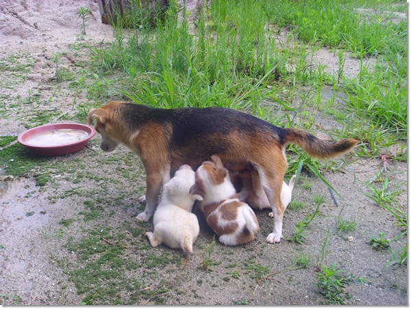 얼마전 오리농장에 있는 개(일명 똥꼬)가 강아지를 5마리나 낳아서