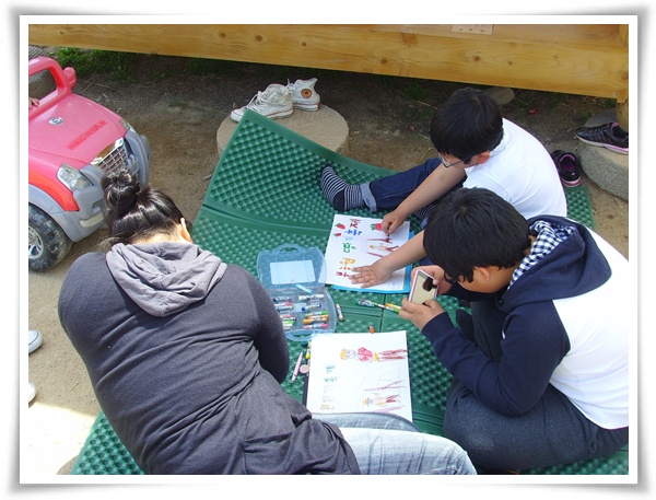 아이들은 그림그리기 대회에 열중하고 있네요..