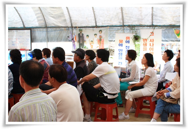비록 변변한 교육장이 없어서 딸기작업실에서 오시는 분들을 맞이하고 있어서