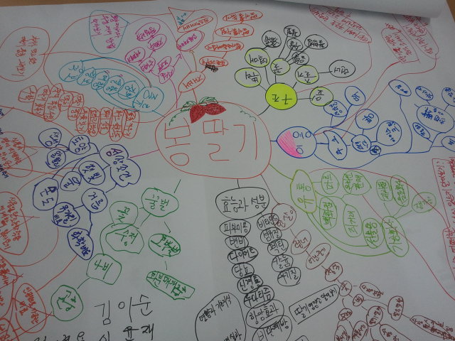 봉딸기라는 주제를 가지고 마인드맵을 함께 만들어 보았습니다..