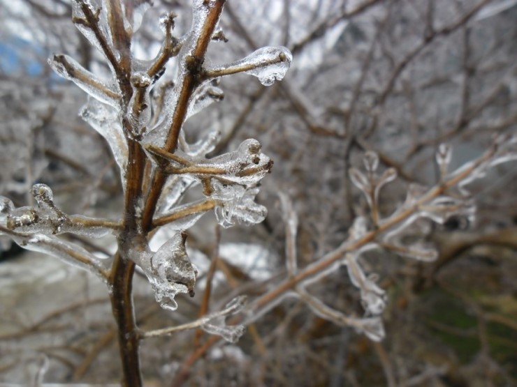 비가 엄청내렸고 날이 추우니 바로 나무위에서 얼음꽃을 피웠습니다.
