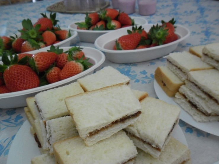 봉농원딸기잼을 바른 식빵과 딸기