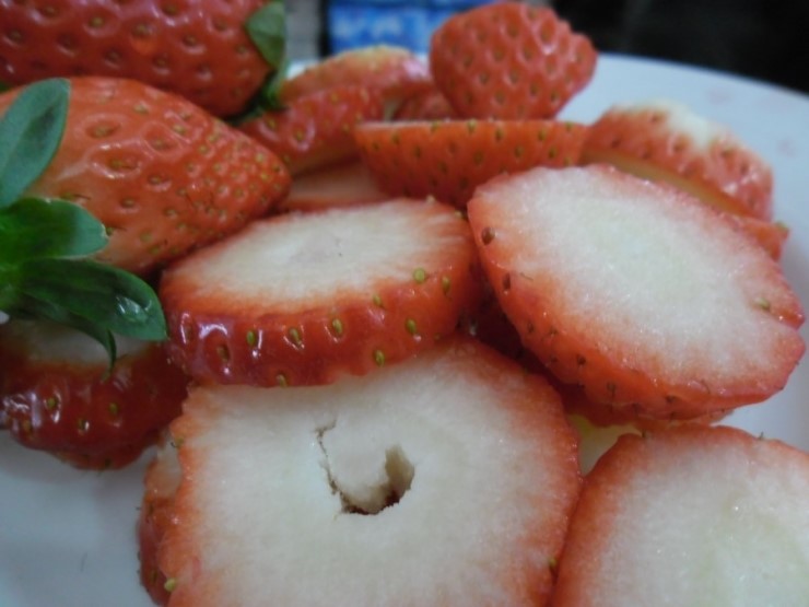 딸기떡볶이위에 얹을 딸기도 준비를 하고.