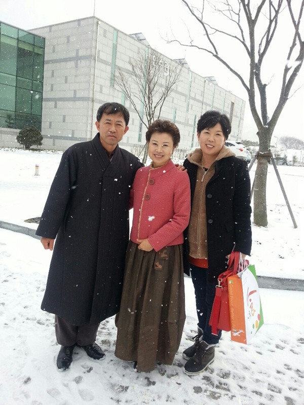 눈이오는게 너무 좋다고 두분 한복을 곱게 입으시고
