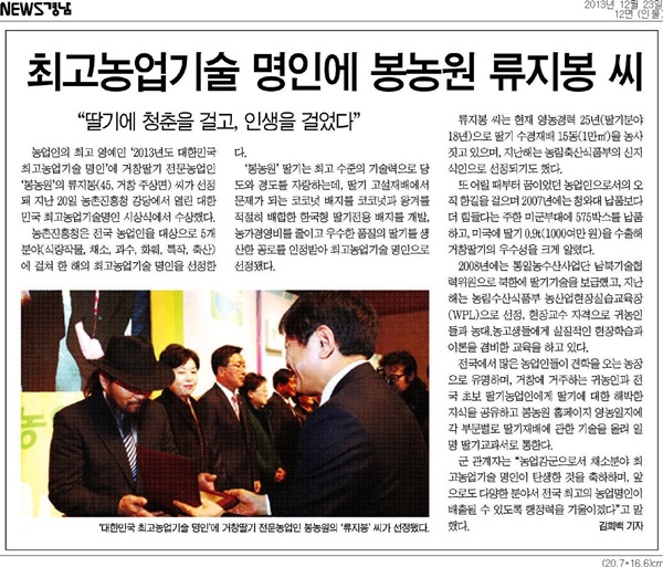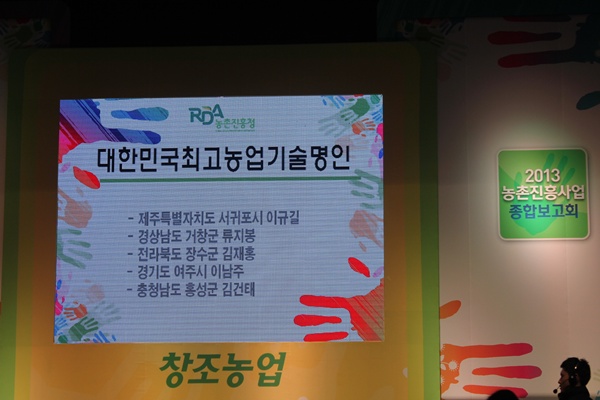 "2013년도 대한민국 최고농업기술명인" 수상자를 발표했다.