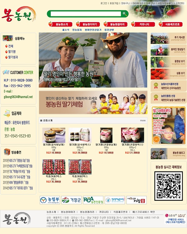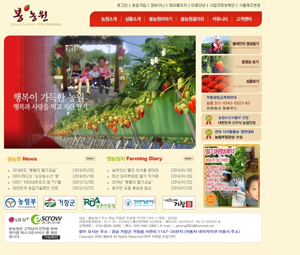 정성과 땀이 베어있는 봉농원 홈페이지