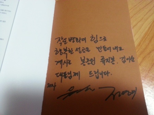 "작은변화의 힘" 출간되자마자 박사님께서 친필사인과 함께 저희손에 도착했습니다.