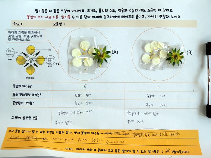 직접 조사하고 관찰한 내용들을 조별로 의견을 나누면서 기록하는 모습입니다.