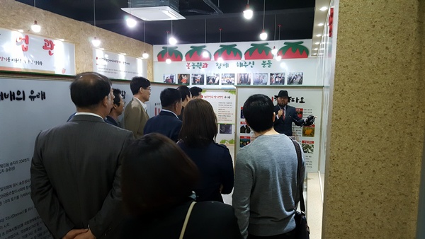 딸기테마파크 내부를 설명하는 류지봉대표