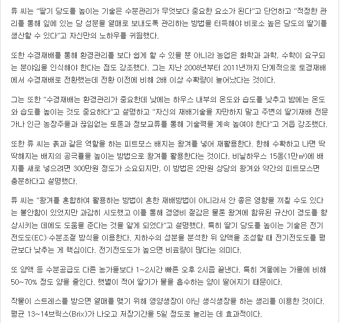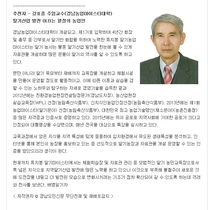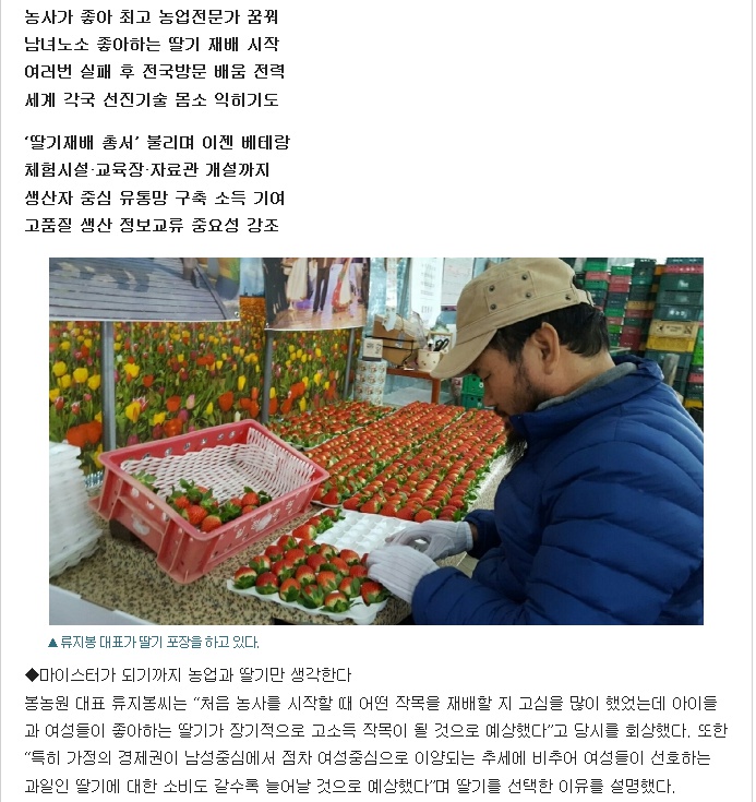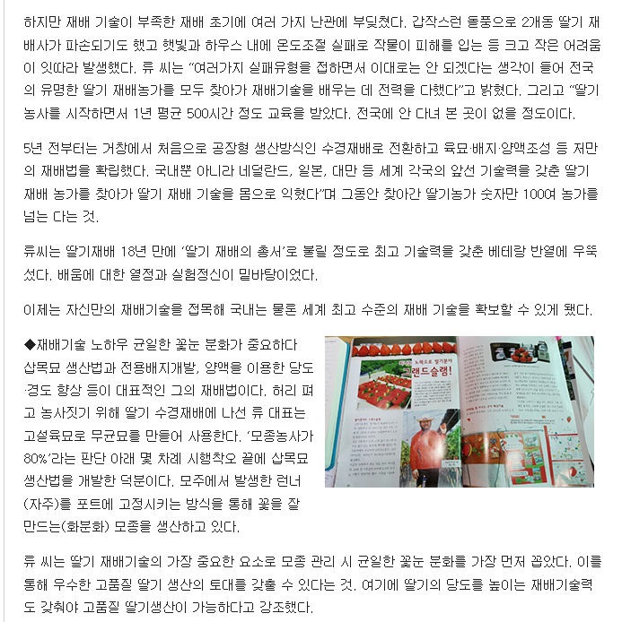 저희 봉농원 류지봉대표의 기사가 대문짝 만하게 나왔네요.