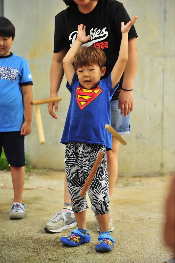 아이들도 제기차기에 한몫 거들고