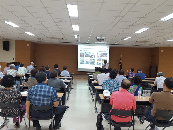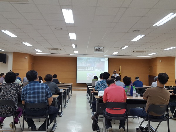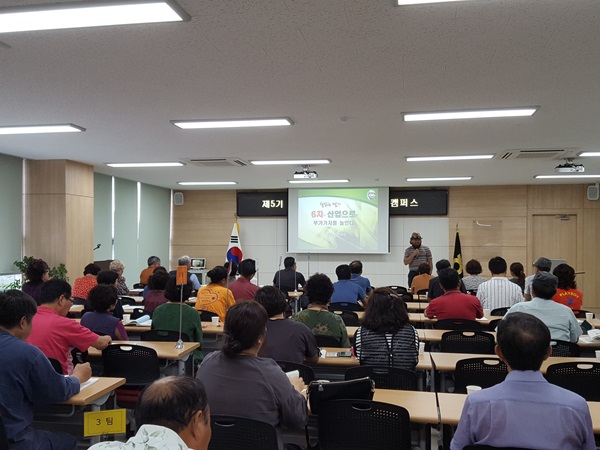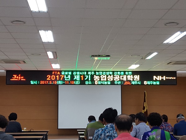 (제주 하귀농협 농업성공대학원 교육을 받으시는 농업인들)