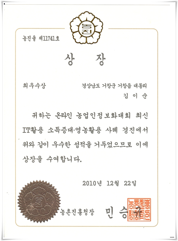 최우수상장...