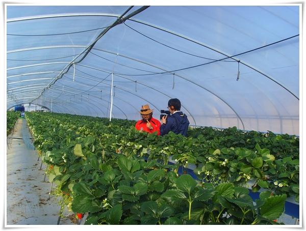 딸기 성장과정을 열심히 설명을 하고 있습니다.
