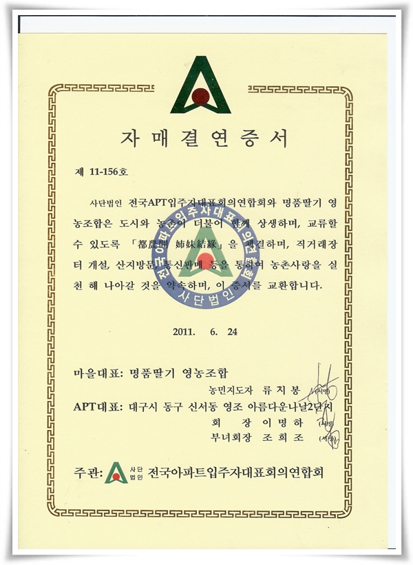 농촌살리기 운동을 전국 아파트 입주민들과 함께 전개해 나갈 예정이라고 합니다.