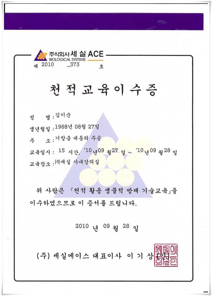 천적 교육 수료증