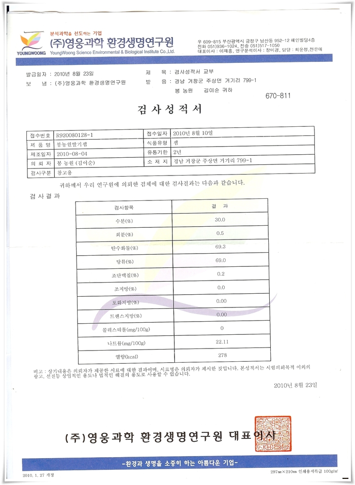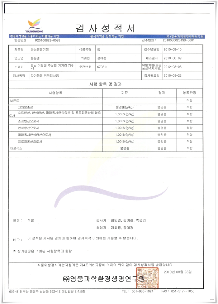딸기잼 검사성적서