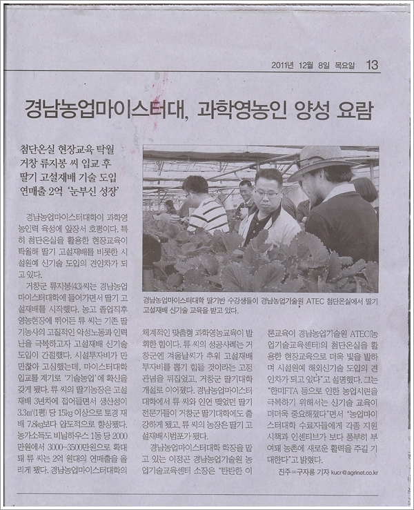 농어민신문 한켠에 경남농업마이스터대학에 다니는