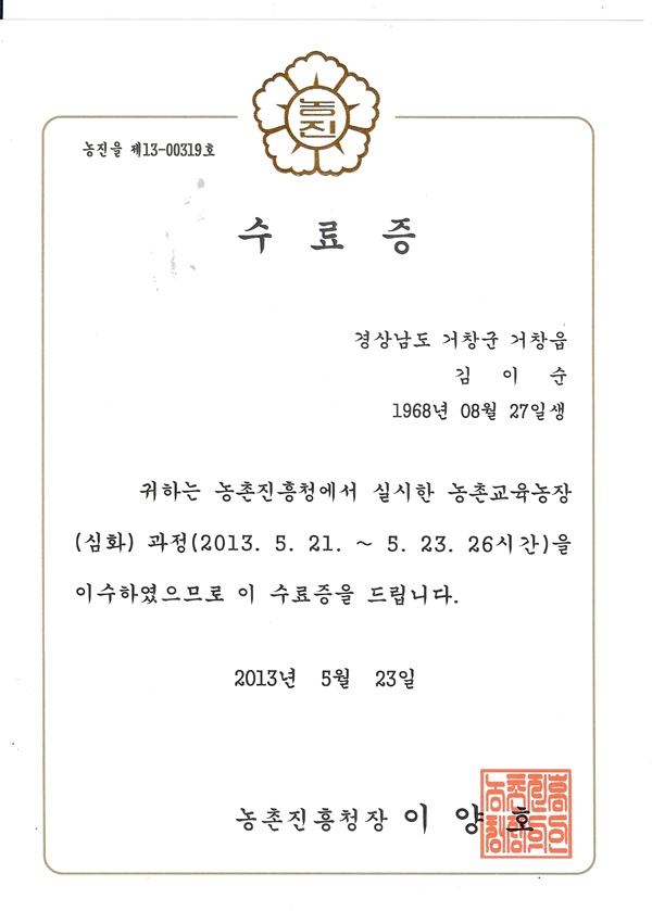 5월 21일 ~ 23일 농촌진흥청에서 실시하는 농촌교육농장 심화과정 교육받고 왔습니다.