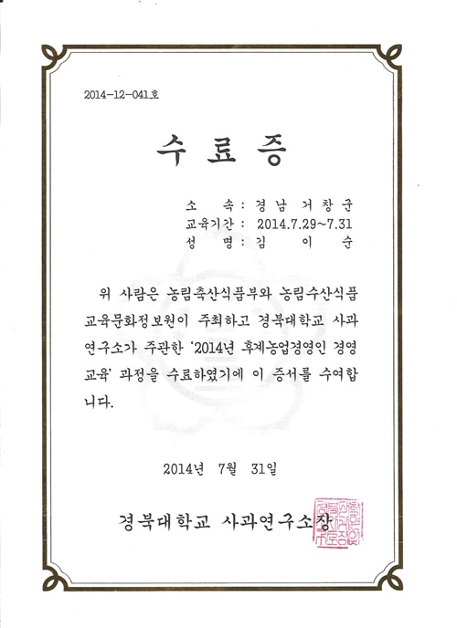 올해 후계농업경영인 신청을 하여 후계농업경영인으로써