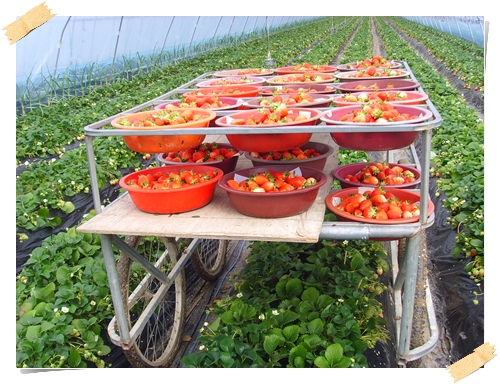 딸기를 실어나르는 수레.....