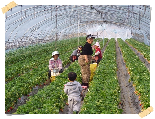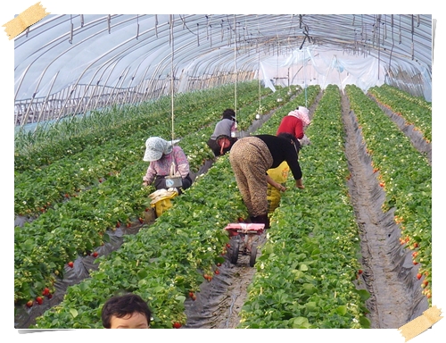 요즘은 아주머니2~3명과 함께 오전에는 딸기를 따서