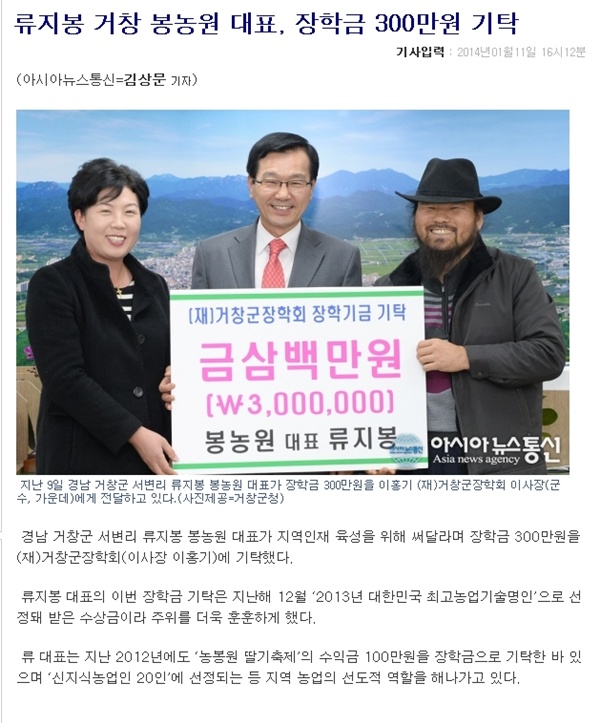 상금은 거창군 장학금으로 기부하였습니다.