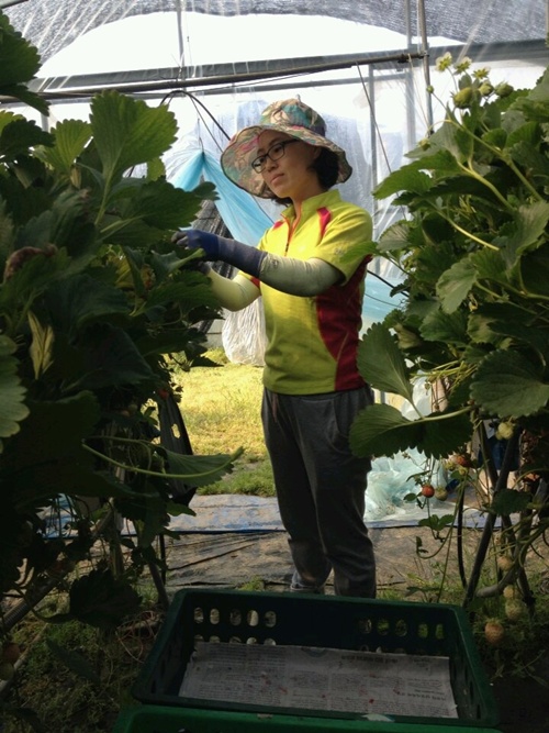 딸기수확을 하면서