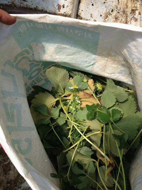 남겨둔 딸기모들은 노엽과 딸기꽃을 제거하는 작업을 하여준다.