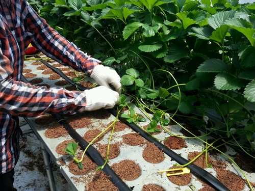얽히고 설켜있는 런너들을 포트위에 놓고