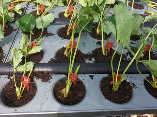 이렇게 상토위에 딸기런너를 꽂아준다.