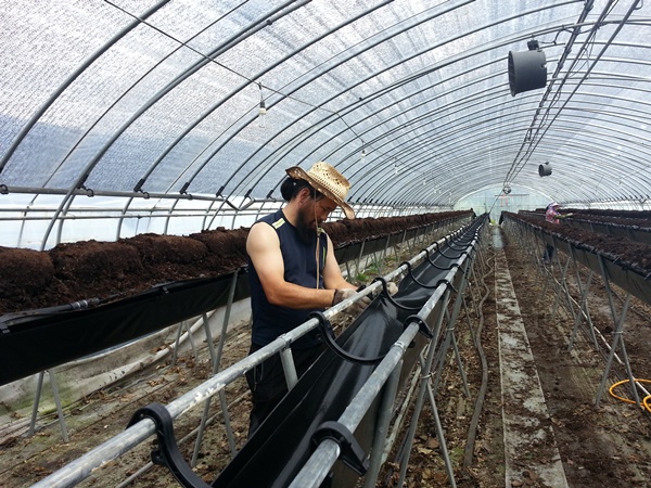 딸기하우스에서 열심히 구슬땀을 흘리고 있습니다.