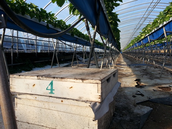 오늘 딸기하우스마다 벌통을 넣었습니다.