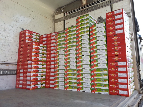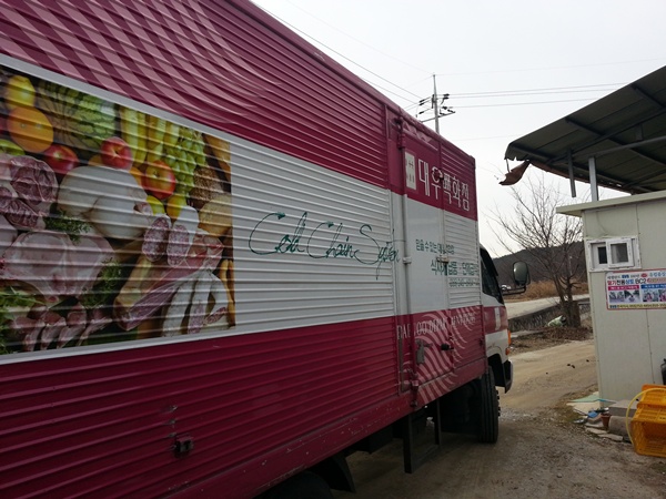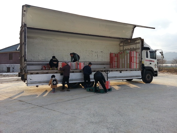 그러면 작목반 회원들과 함께 수송차에 실어서 거래처로 향합니다.