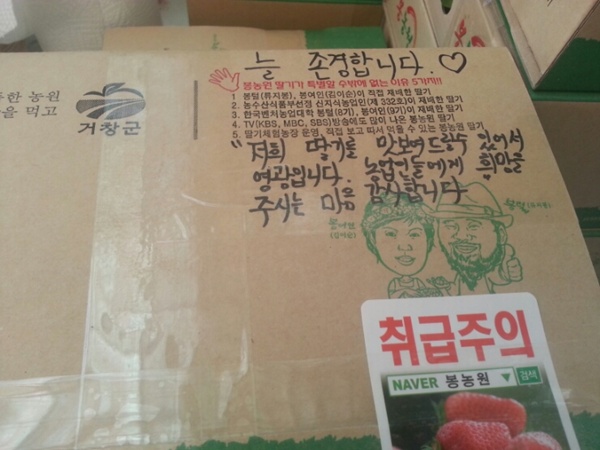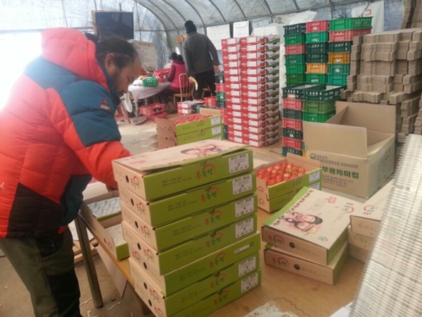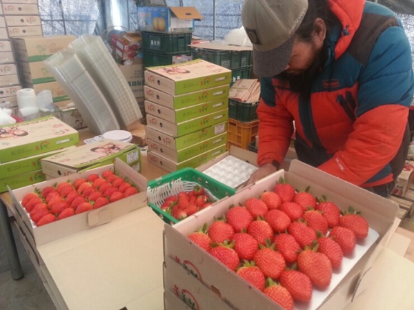 까다롭게 선정된 딸기들을 정성스럽게 포장을 마친 봉농원딸기..