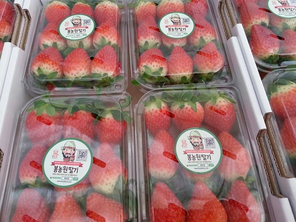 수확한 딸기포장작업을 하고