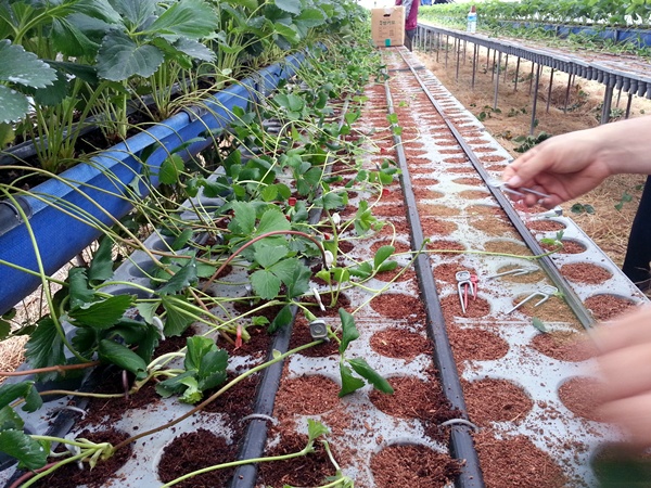 딸기모종 핀박기 작업을 하면서