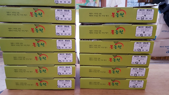 직접 선별포장을 해서 작목반으로 실어가고 있습니다.