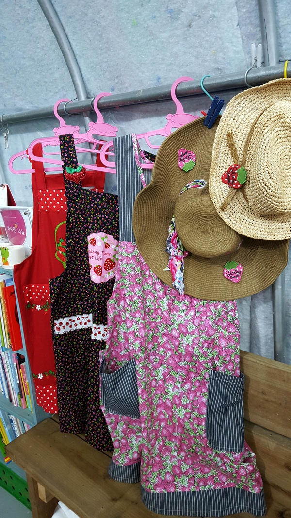 딸기체험을 진행하면서 제가 입게될 앞치마와 모자도 예쁘게 준비를 하였습니다.